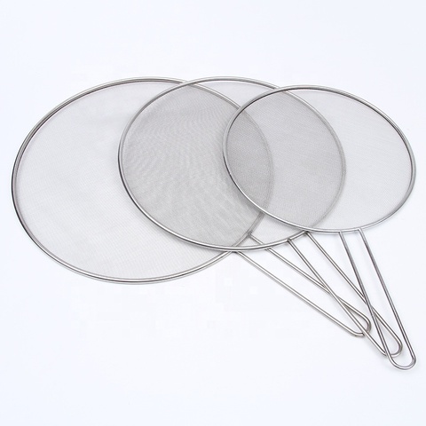 Crépines à mailles fines en acier inoxydable à long manche pour poêle avec couvercle plat pour la cuisson à l'huile de friture